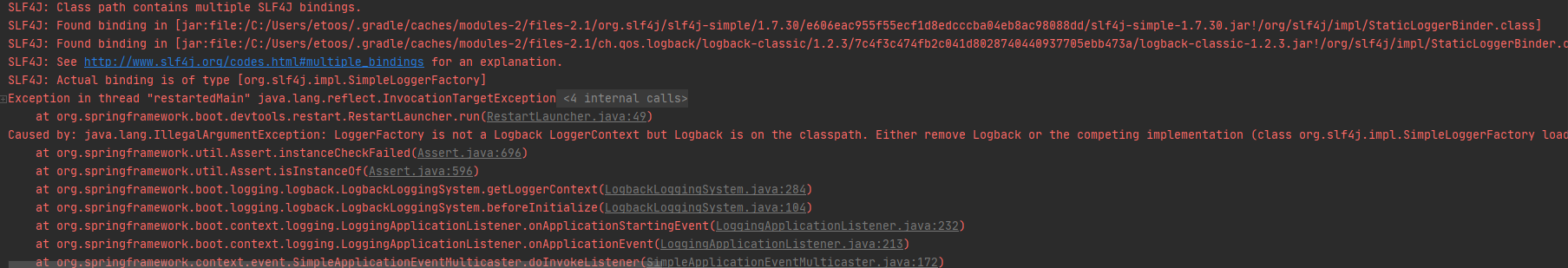 위에서 발생한 "LoggerFactory is not a Logback LoggerContext but Logback is on the classpath" 가